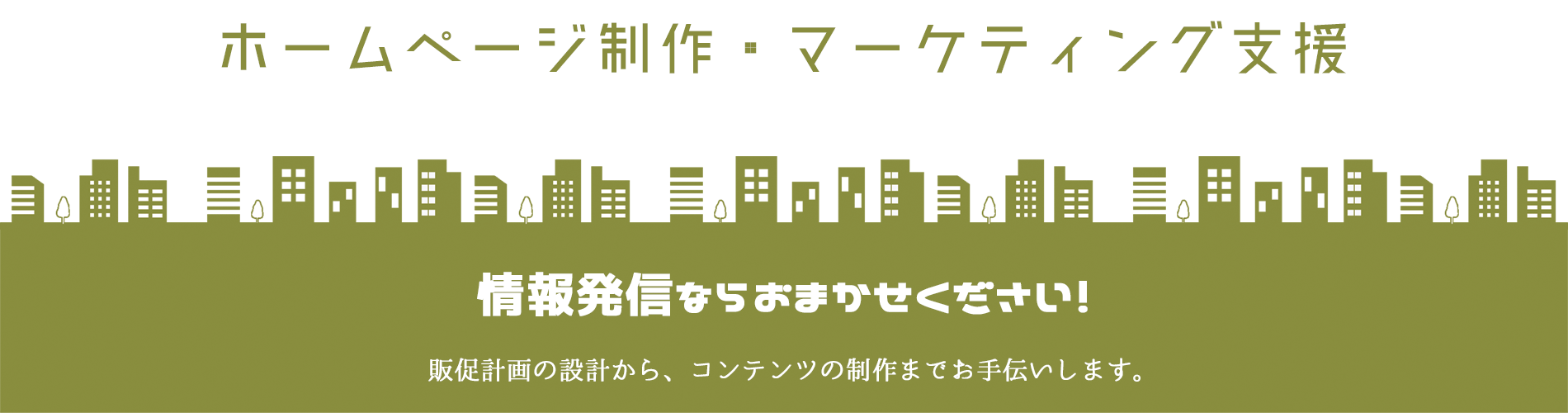 ホームページの制作以外にも、ホームページへ誘導するための名刺やチラシの作成や、SEO対策を目的としたブログ記事の作成支援など地元密着企業の発信力を上げるお手伝いを事業にしています。